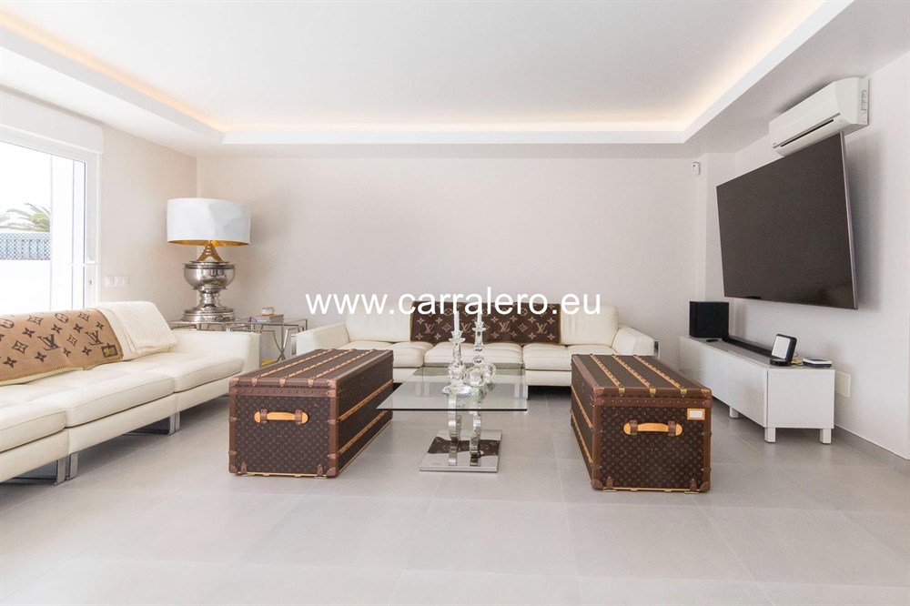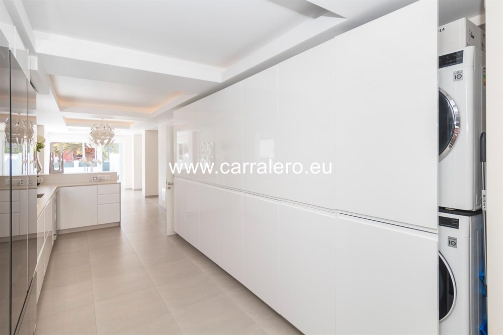 This luxurious, move–in ready villa shines with modern architecture, high–end features, and thoughtful smart home solutions. The property was extensively and expensively renovated about two years ago and is in excellent condition. The property spans three floors and offers a generous living space with a thoughtful room layout. The bright, open–plan living and dining room forms the heart of the ground floor. The spacious kitchen is equipped with innovative, high–quality appliances and offers an exceptionally large amount of storage space. Another highlight is the spacious TV room, which offers space for a dining table with up to 24 seats, a large sofa group, and a stylish guest toilet.